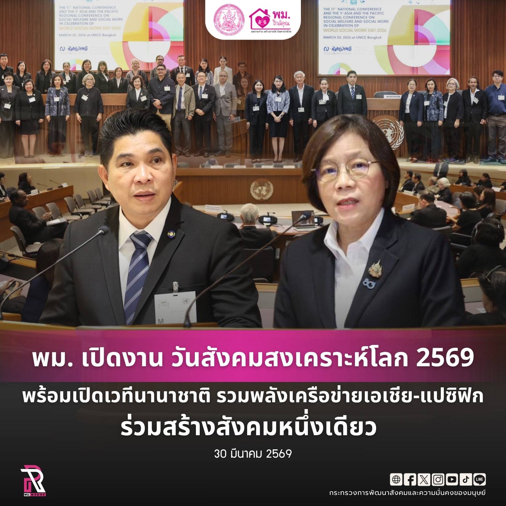 พม. เปิดงานวันสังคมสงเคราะห์โลก 2569 พร้อมเปิดเวทีนานาชาติ รวมพลังเครือข่ายเอเชีย-แปซิฟิก ร่วมสร้างสังคมหนึ่งเดียว